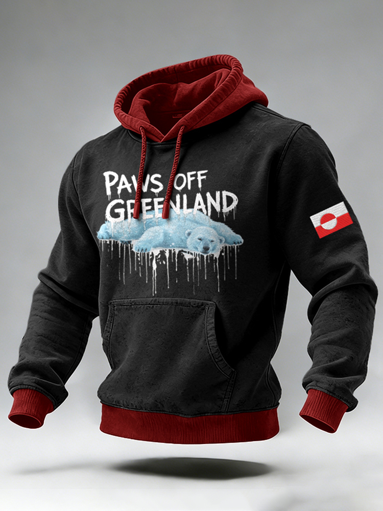 Paws Off Greenland Print Men's Casual Hooded Sweatshirt