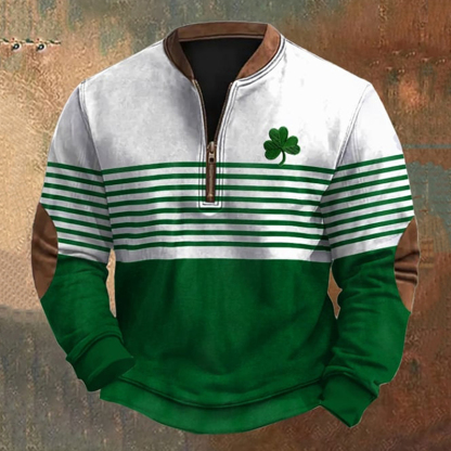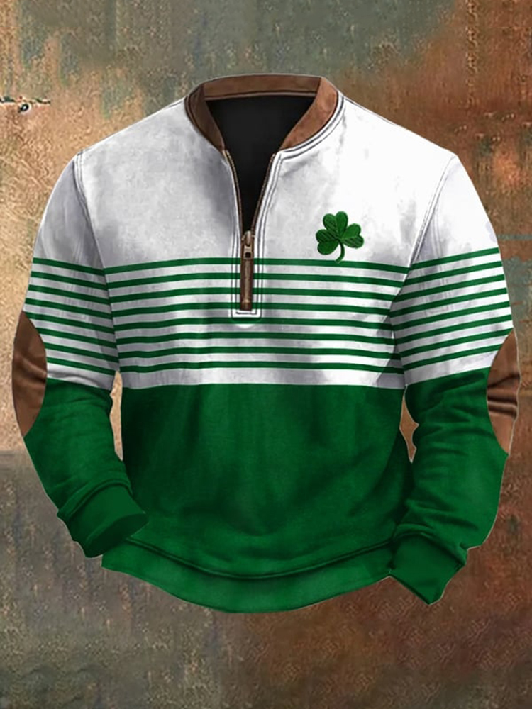 St. Patrick's Day Shamrock Print Zip Sweatshirt