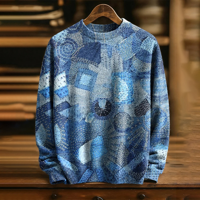 Vintage Patchwork Pattern Print Knit Pullover Sweater