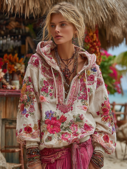 Popular Elements: Half Zip, Floral Embroidery