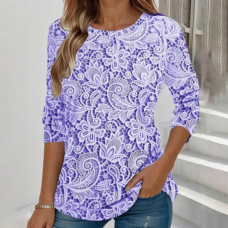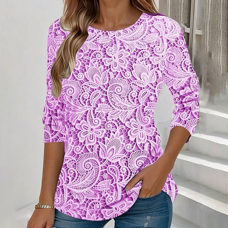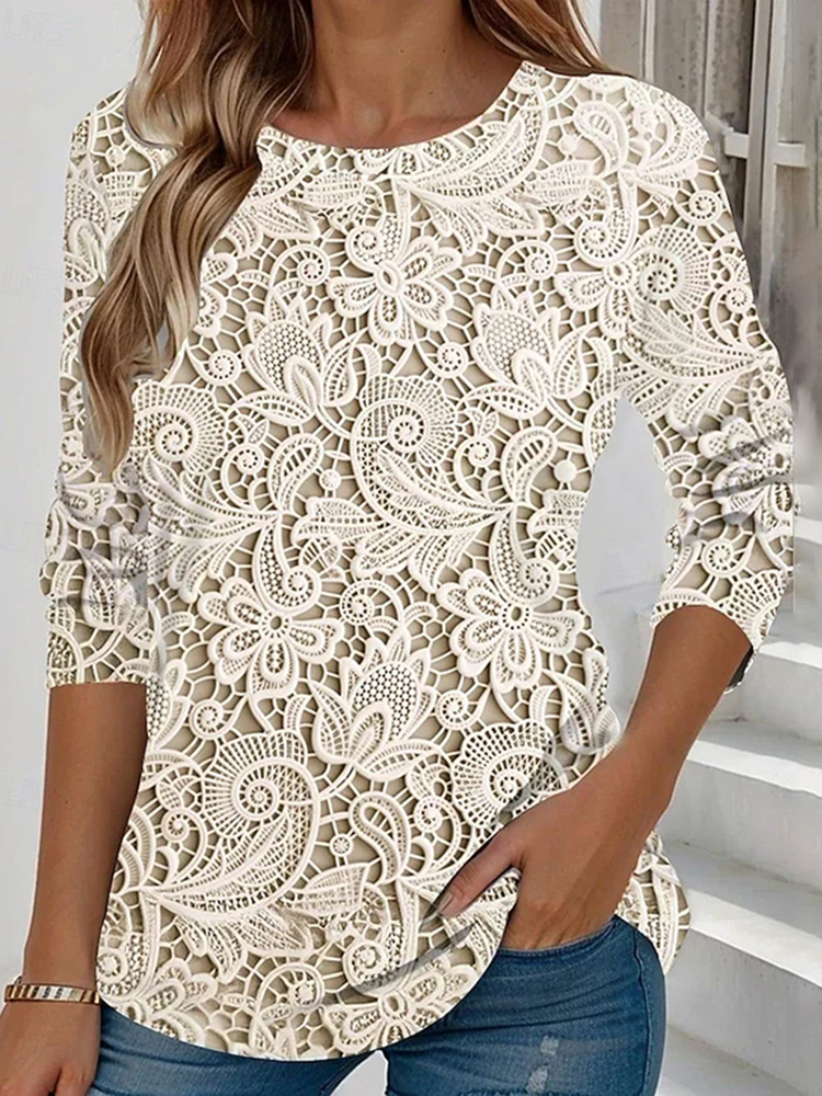 Women's Vintage Lace Floral Print Long Sleeve T-shirt