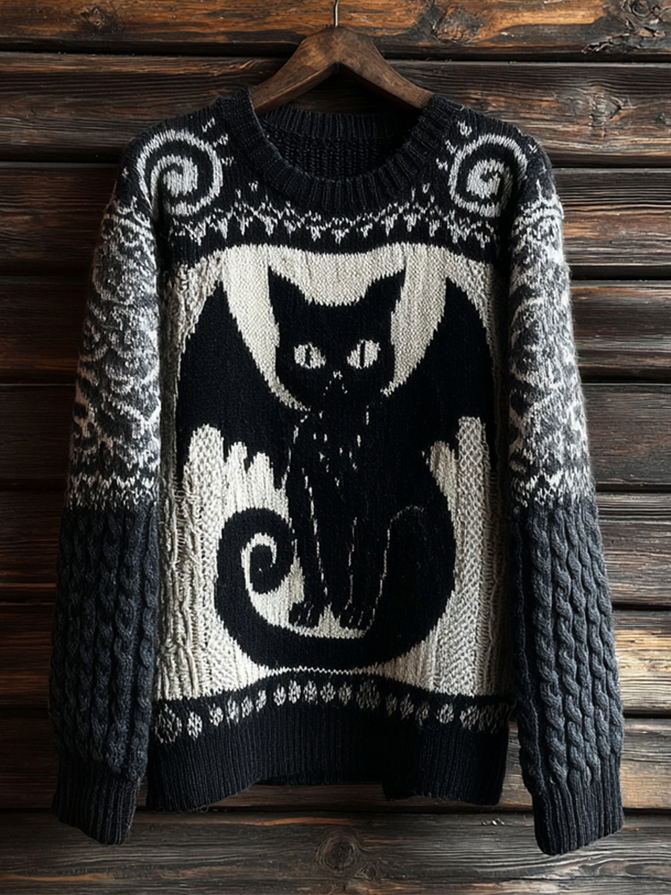 Women's Cute Winter Cat Art Knitted Warm Sweater