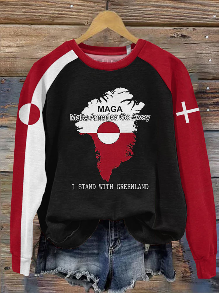 Make America Go Away And Stand With Greenland Printed Casual Sweatshirt