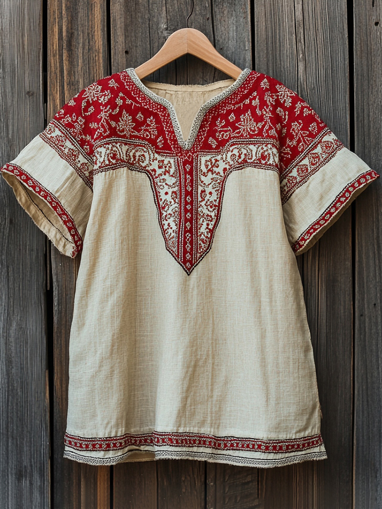Women's Greenland Embroidery Ethnic Style Flower Short Sleeved Shirt