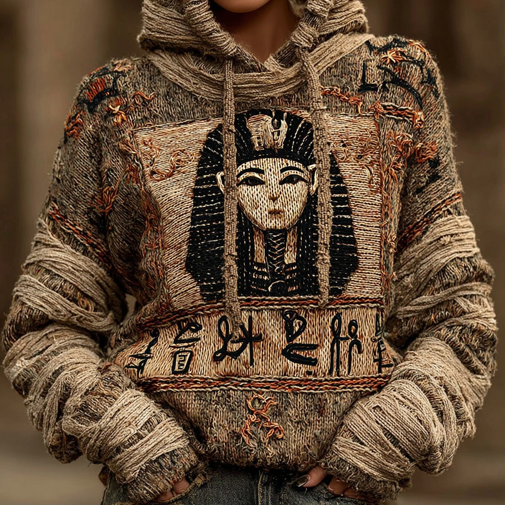 Women's Ancient Egyptian Pharaoh Art Warm Knitted Hooded Sweater