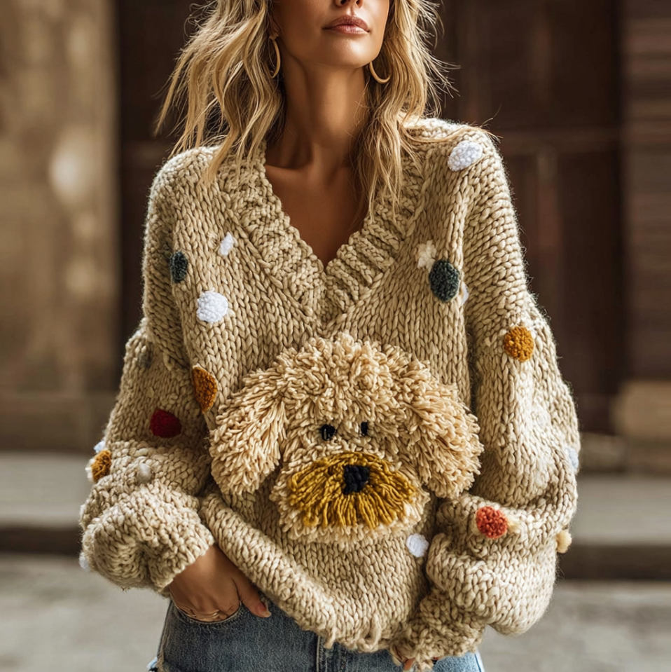 Lady Retro Cute Dog Plush Comfortable Knitted Sweater.
