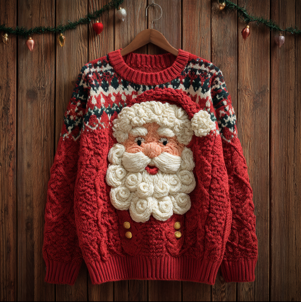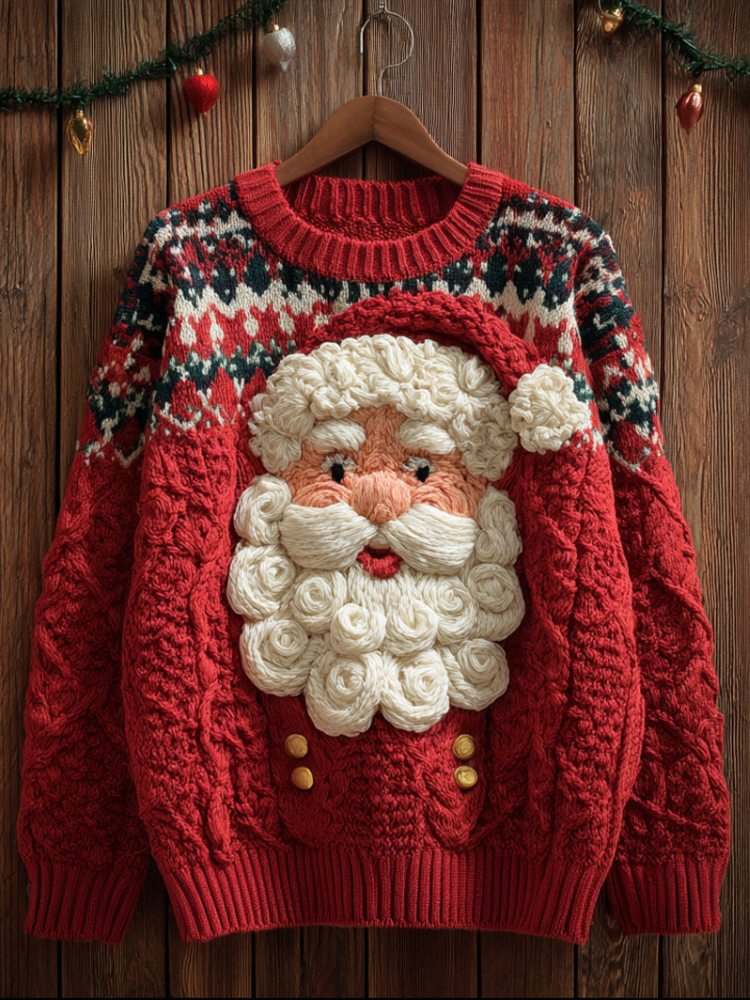 Christmas Santa Claus Elements Women's Round Neck Knit Sweater