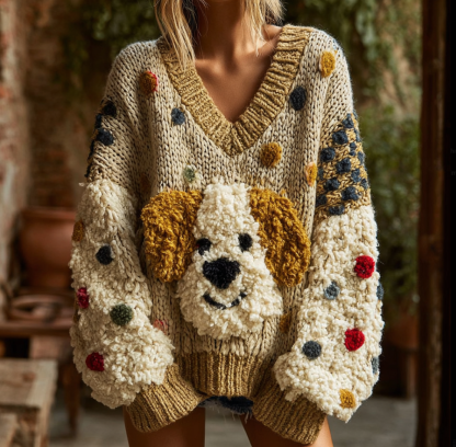 Lady Retro Cute Dog Plush Comfortable Knitted Sweater.