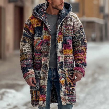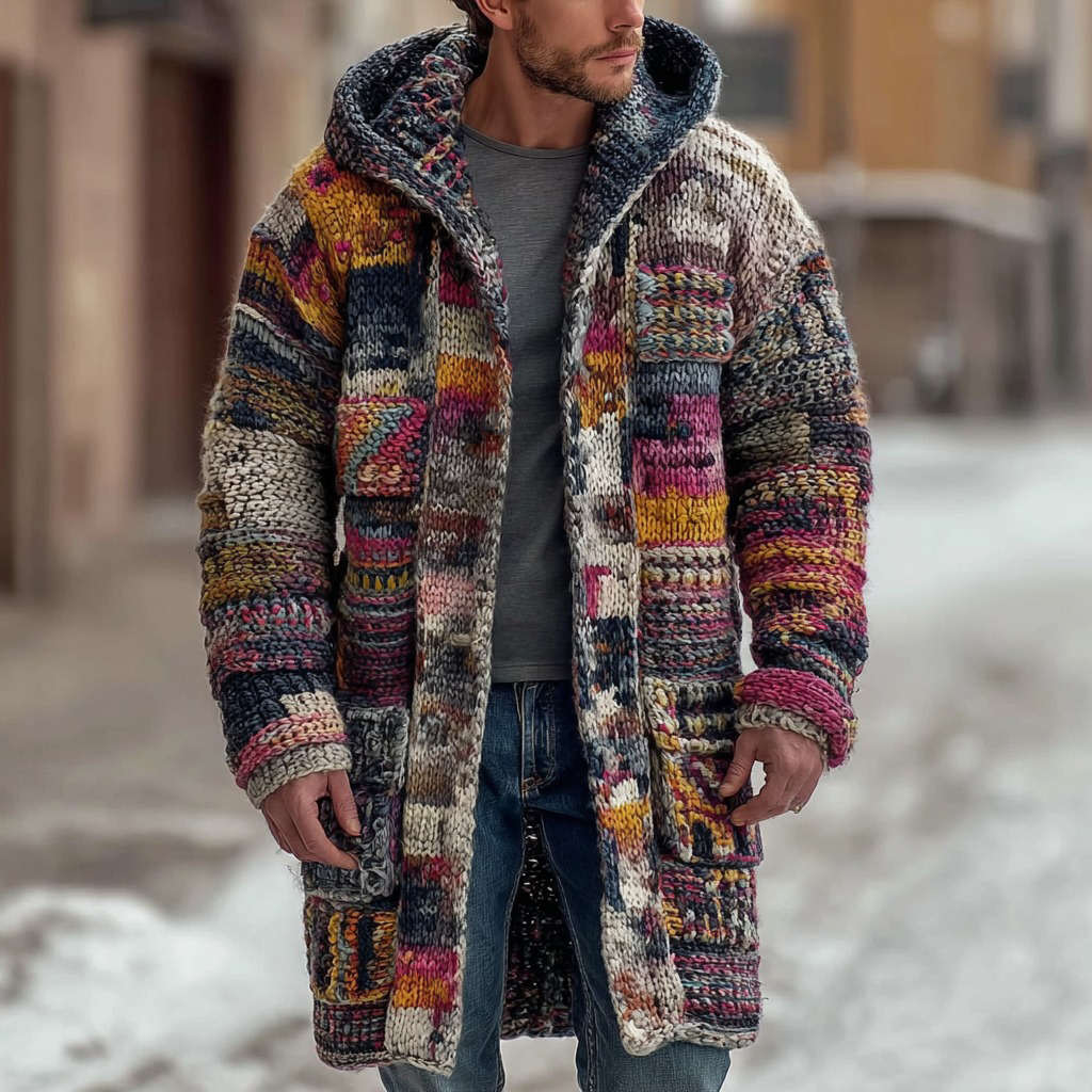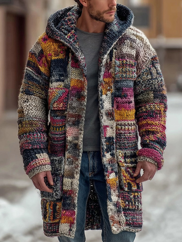 Men's Retro Tribal Geometric Pattern Knitted Jacquard Long Cardigan Sweater