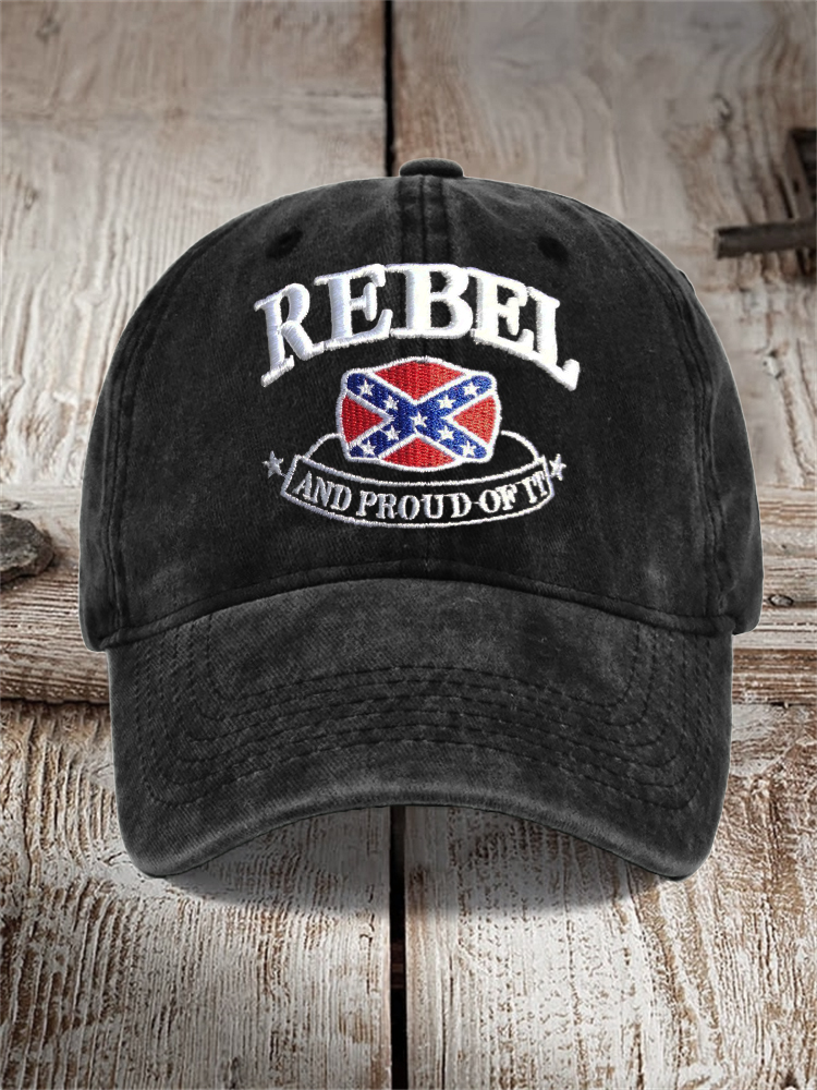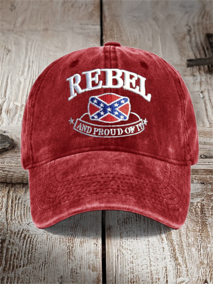 Unisex Rebel And Proud Of It Flag Embroidered Washed Cap