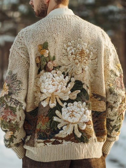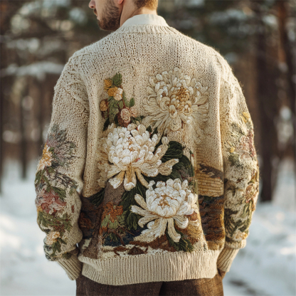 Vintage Japanese Chrysanthemum Embroidered Men's Knit Cardigan