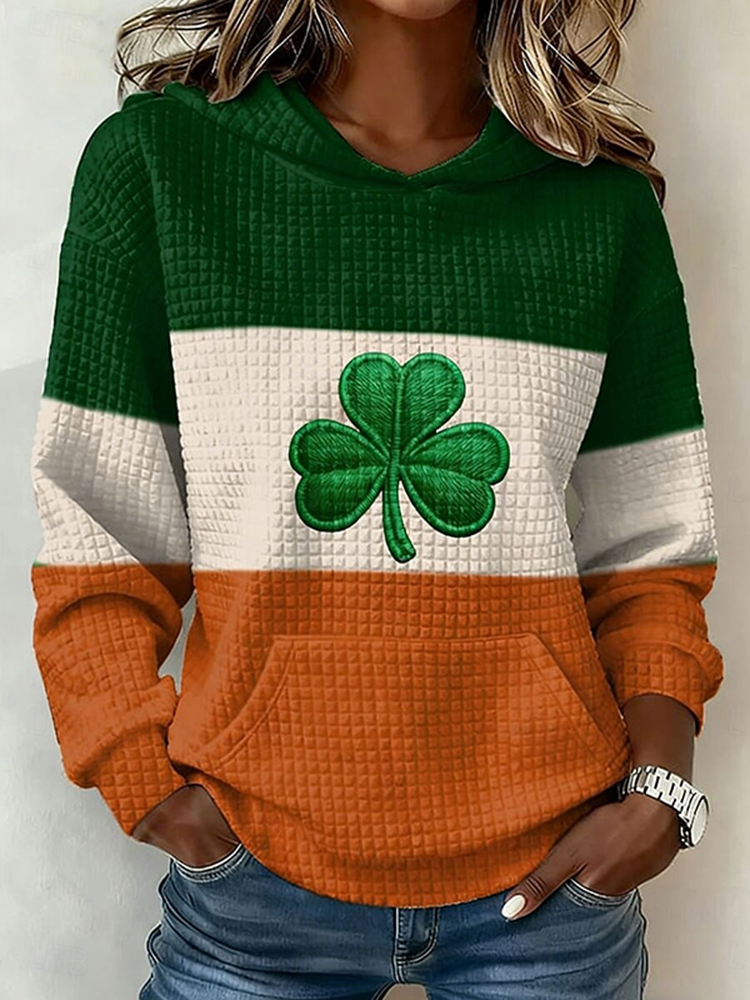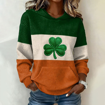 Women's St. Patrick's Day Irish With Shamrock Waffle Color-blocked Design Hoodie