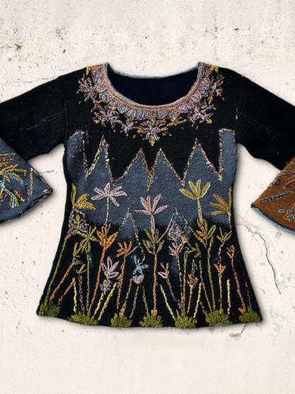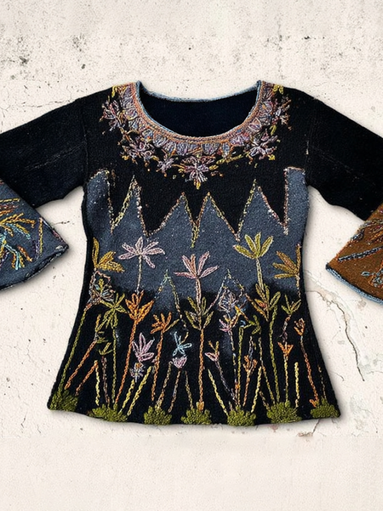 Women's Three-dimensional Multi-colored Plant-themed Casual Round-neck Sweater