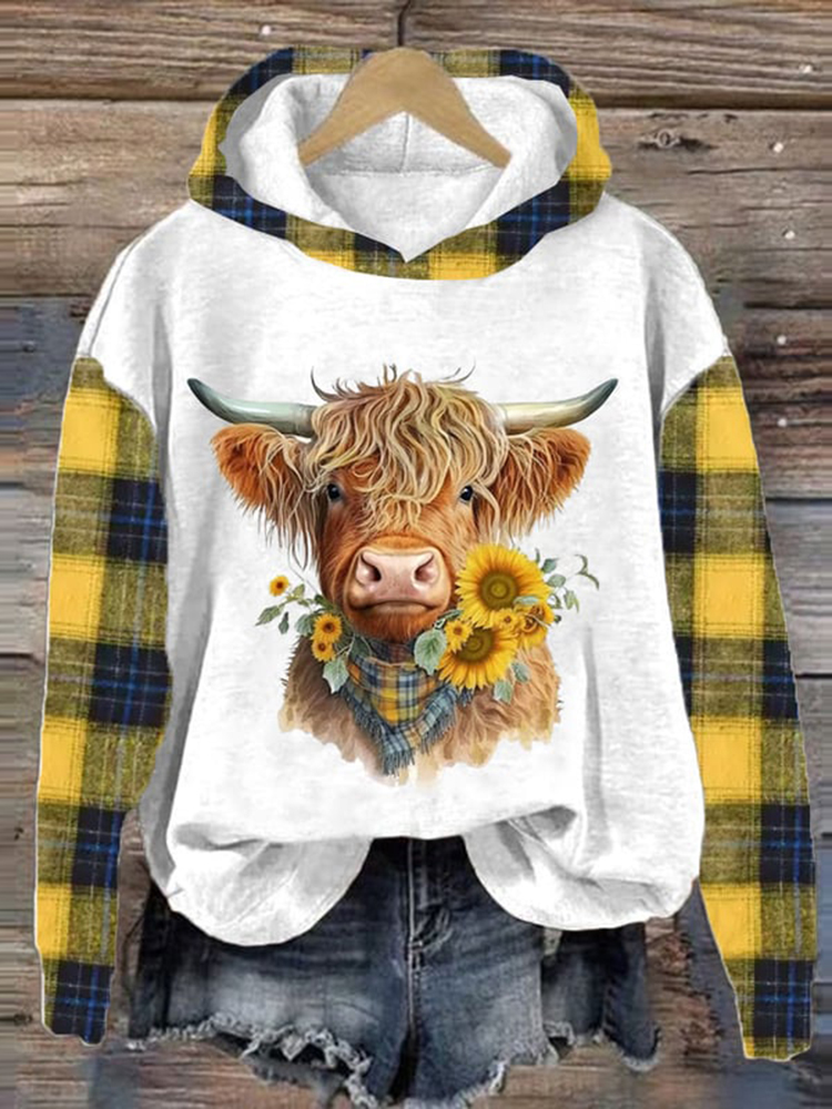 Women's Western Highland Cow Print Hooded Sweatshirt