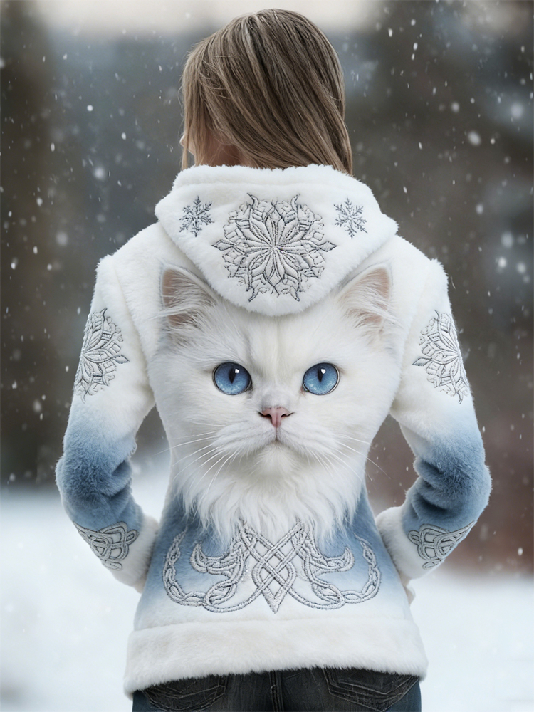Classy White Cat Snowflakes Celtic Cozy Plush Hoodie