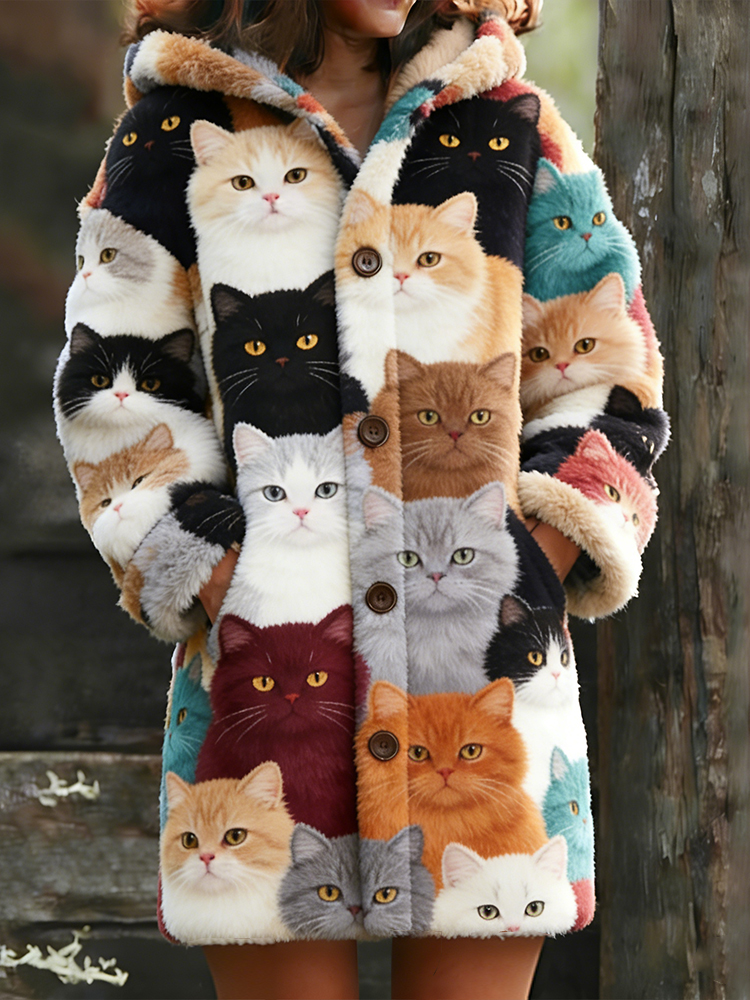 Cute Cozy Pastel Cats Art Cozy Knit Hooded Cardigan