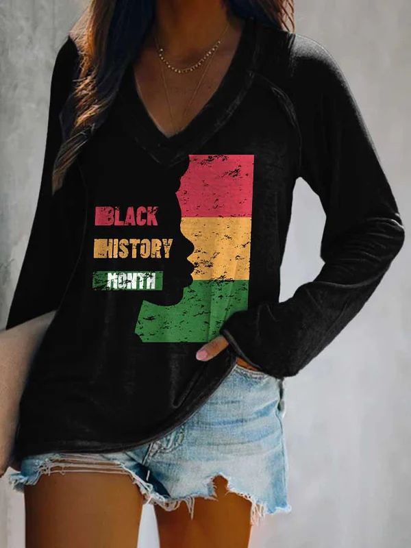 Black History Month V-neck Print T-Shirt