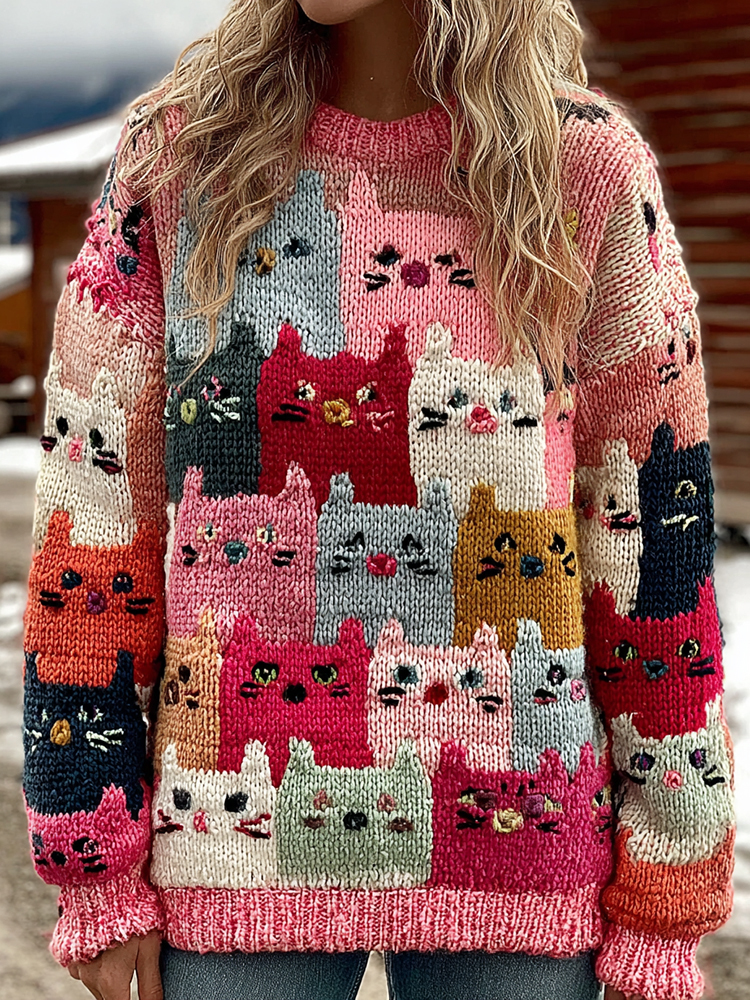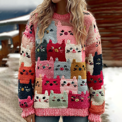Colorful Winter Cats Pattern Art Cozy Knit Sweater