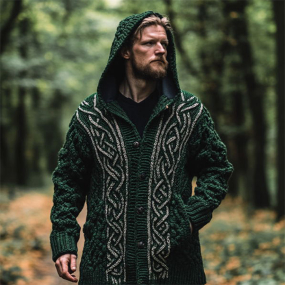 Men's Celtic Knot Vintage Cozy Knit Hooded Cardigan