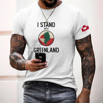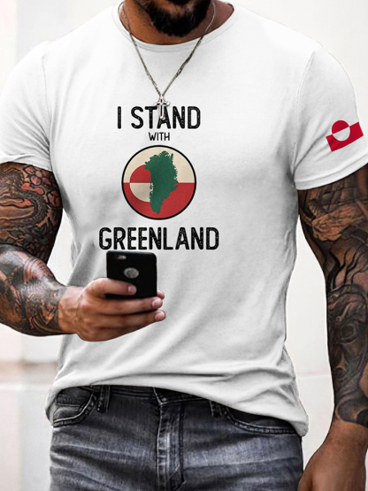 Men's I Stand With Greenland Print Short Sleeve Casual T-shirt