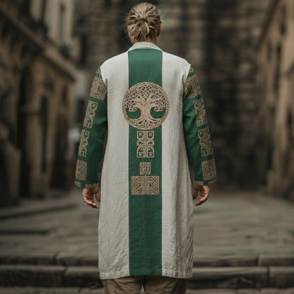 Men's Retro Viking Tree Of Life Print Casual Blended Long Cardigan