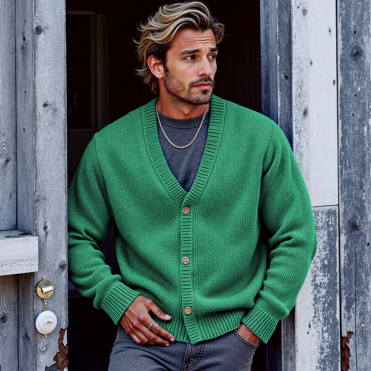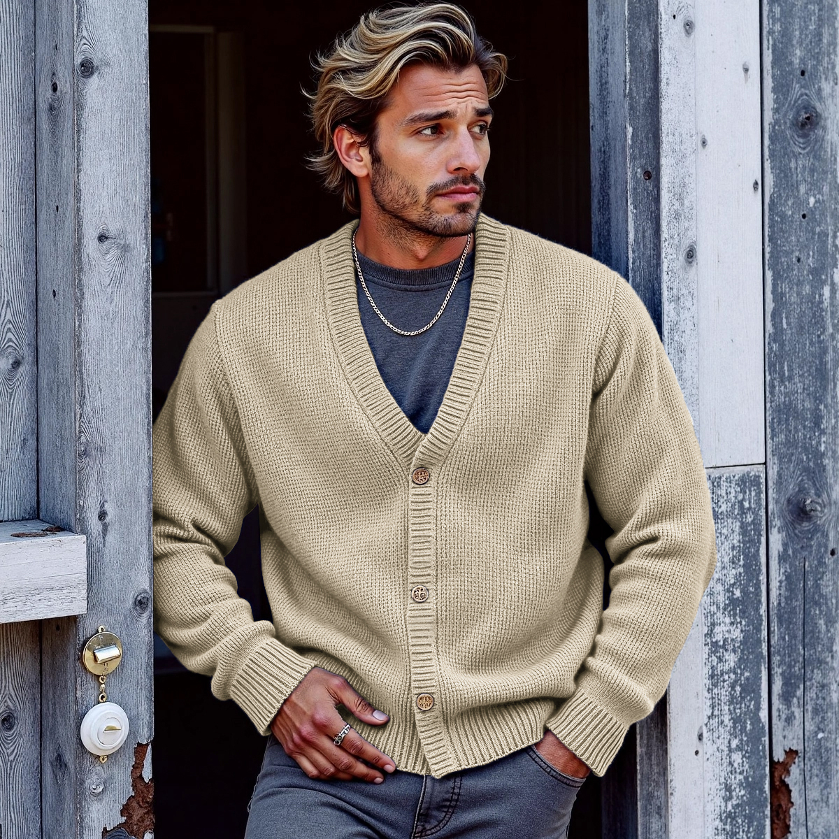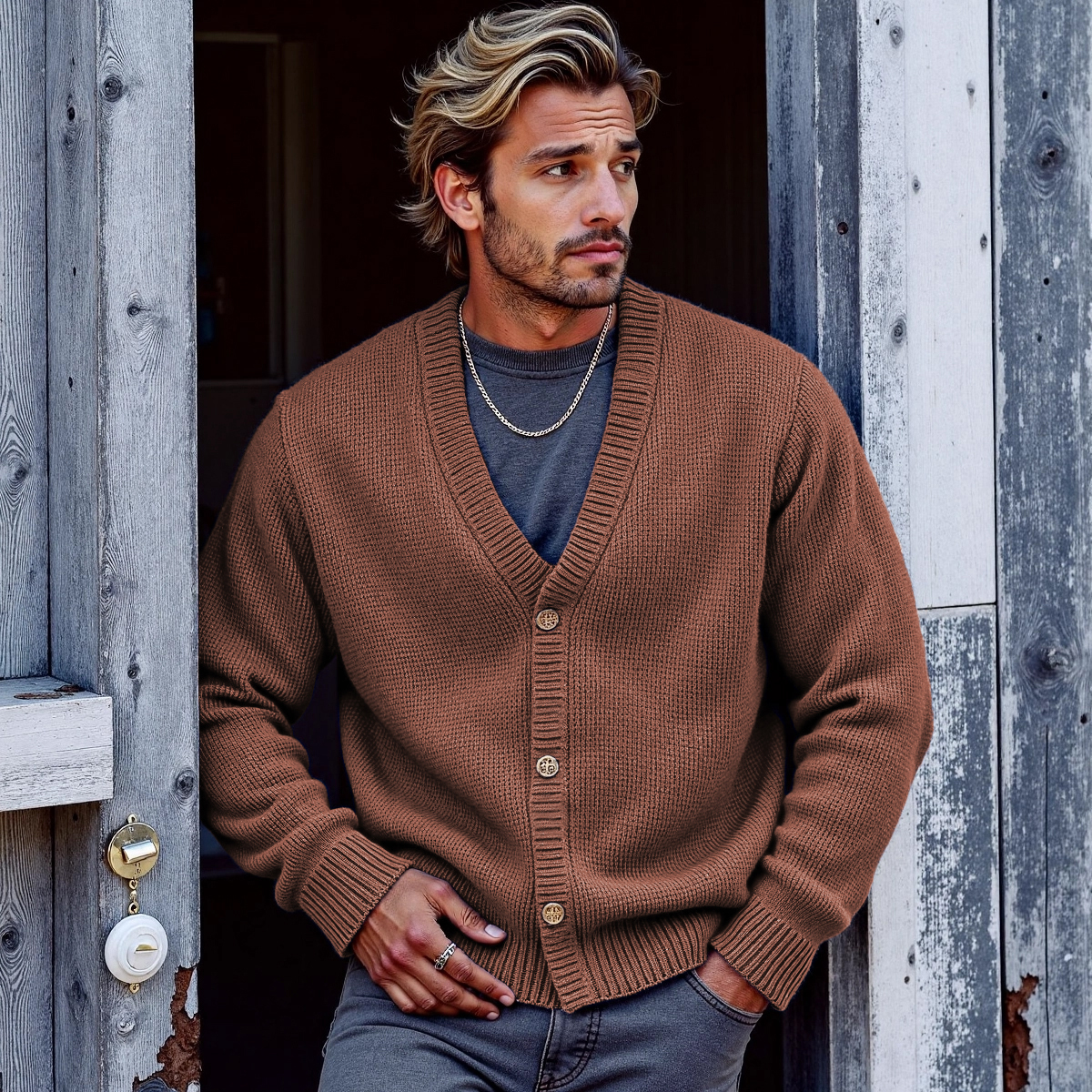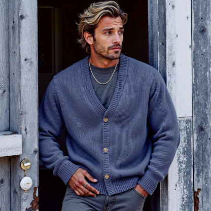 Men's Solid Color V-Neck Button Sweater Cardigan