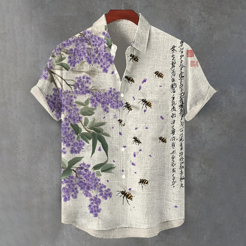 Men's Vintage Bees And Flower Art Pattern Casual Shirt