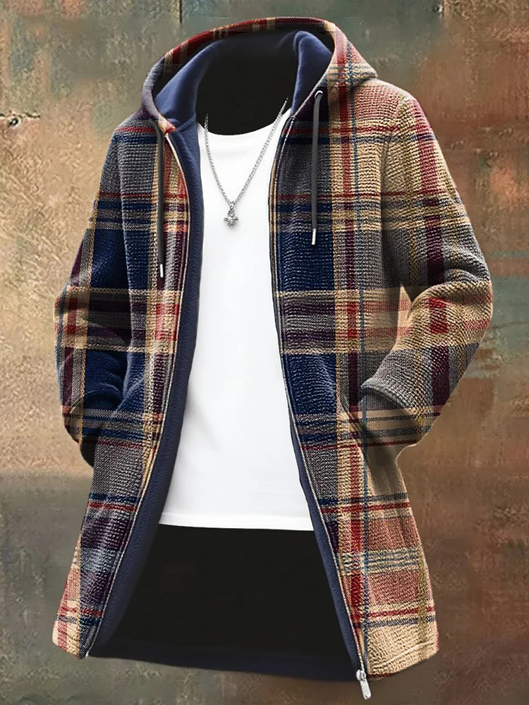 Plaid Art Print Plush Thick Long-sleeved Sweater Cardigan