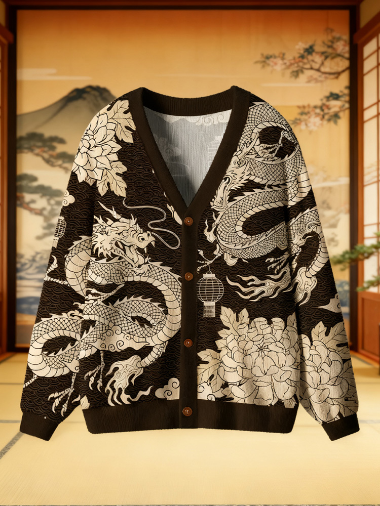 Two Dragons Playing With A Pearl Ugly Cardigan Sweater