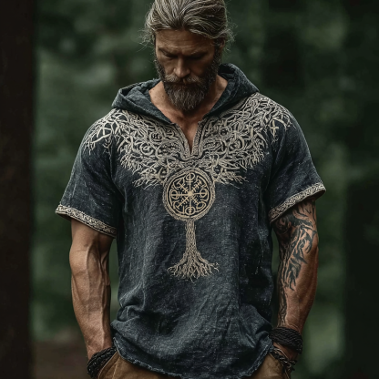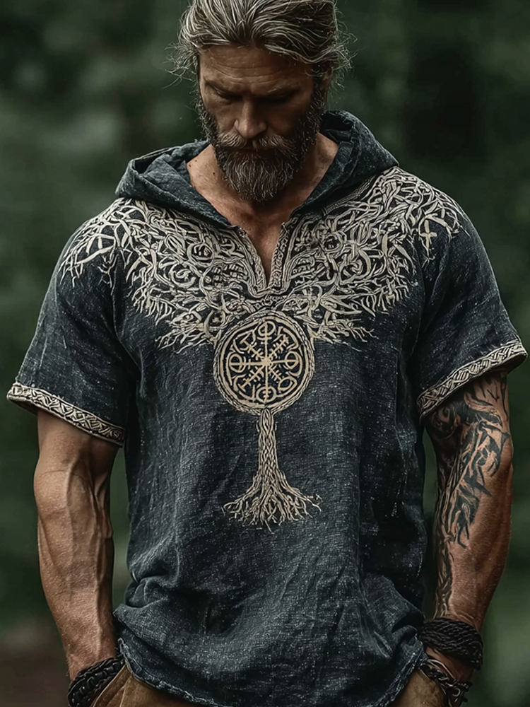 Vintage Viking Style Celtic Knot Design Men's Linen Hooded Short-sleeve T-shirt