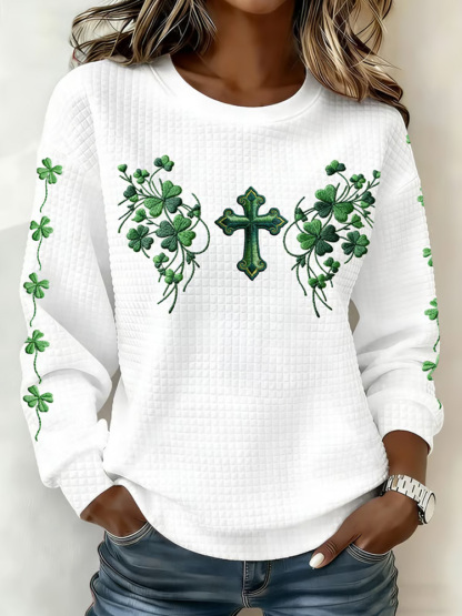 Women's Autumn_winter Clover Printed Crew Neck Casual Sweatshirt