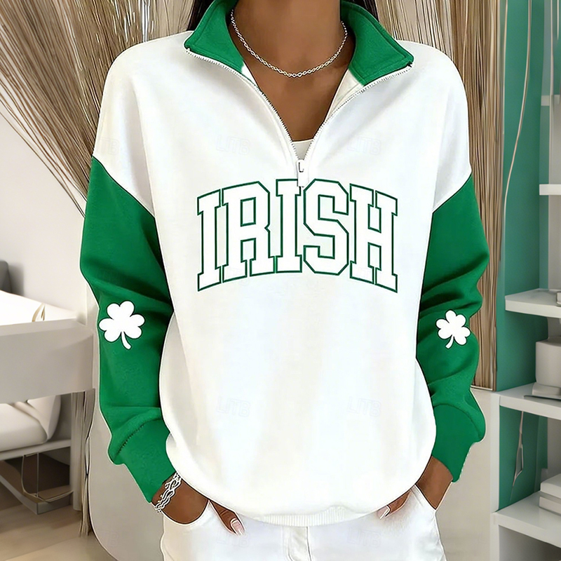 Women's Irish St. Patrick's Day Shamrock Print Zip Up Sweatshirt