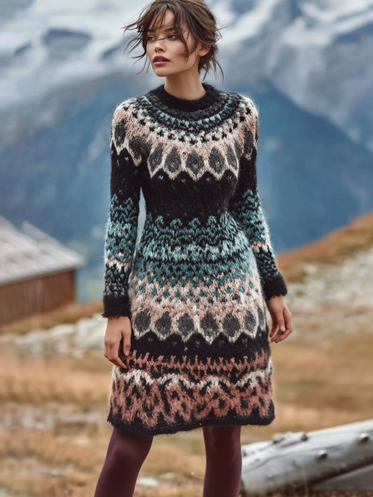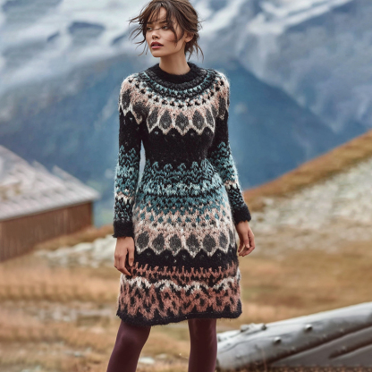 Women's Norwegian Jacquard Icelandic Cozy Knit Sweater Dress