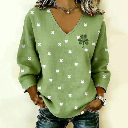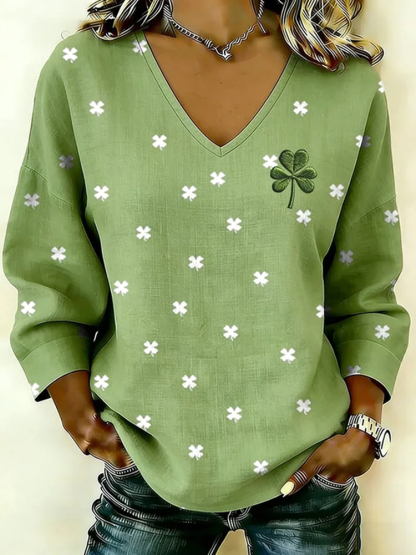 Women's St. Patrick's Day Shamrock Pattern V-neck Loose T-shirt