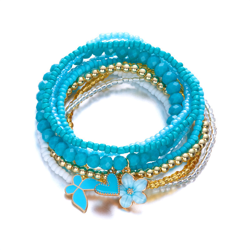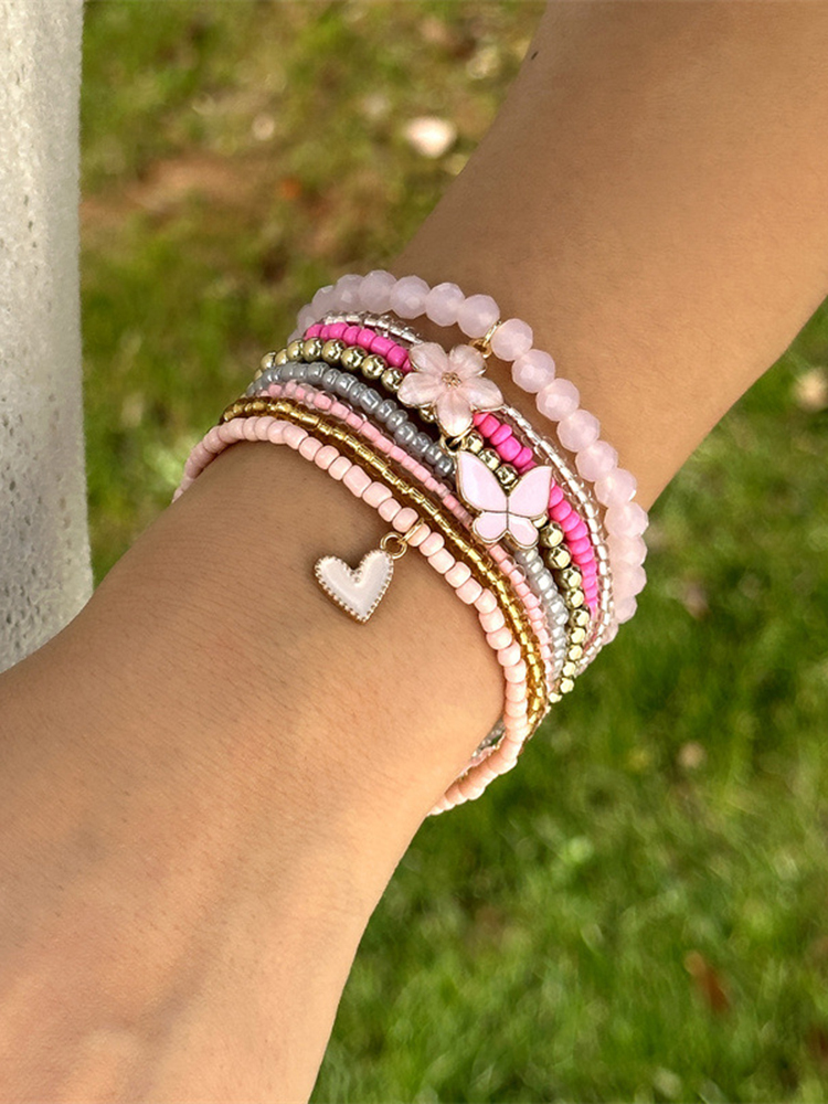 Bohemian 9-piece Butterfly, Flower And Heart Beaded Bracelet