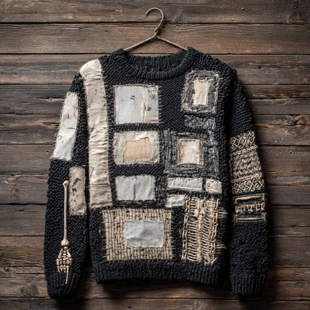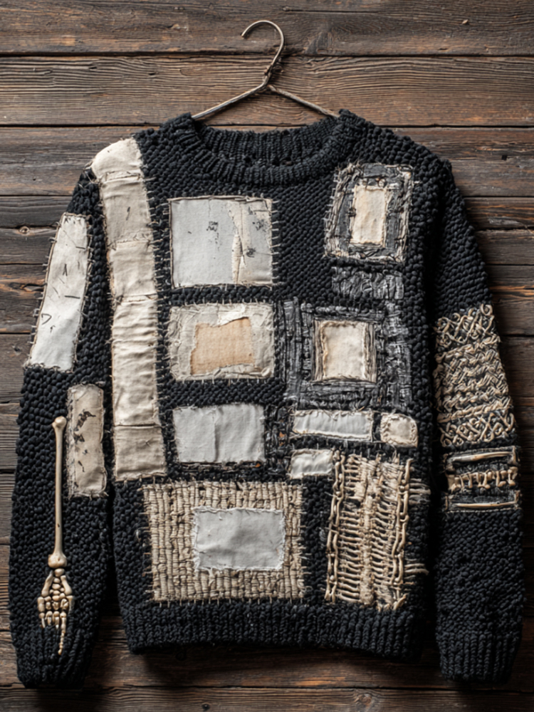 Men's Antique Geometric Pattern Art Black Round Neck Sweater