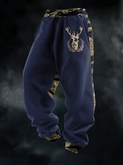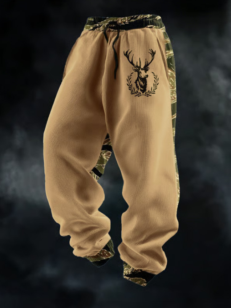 Men's Casual Waffle Camouflage Elk Pattern Sweatpants