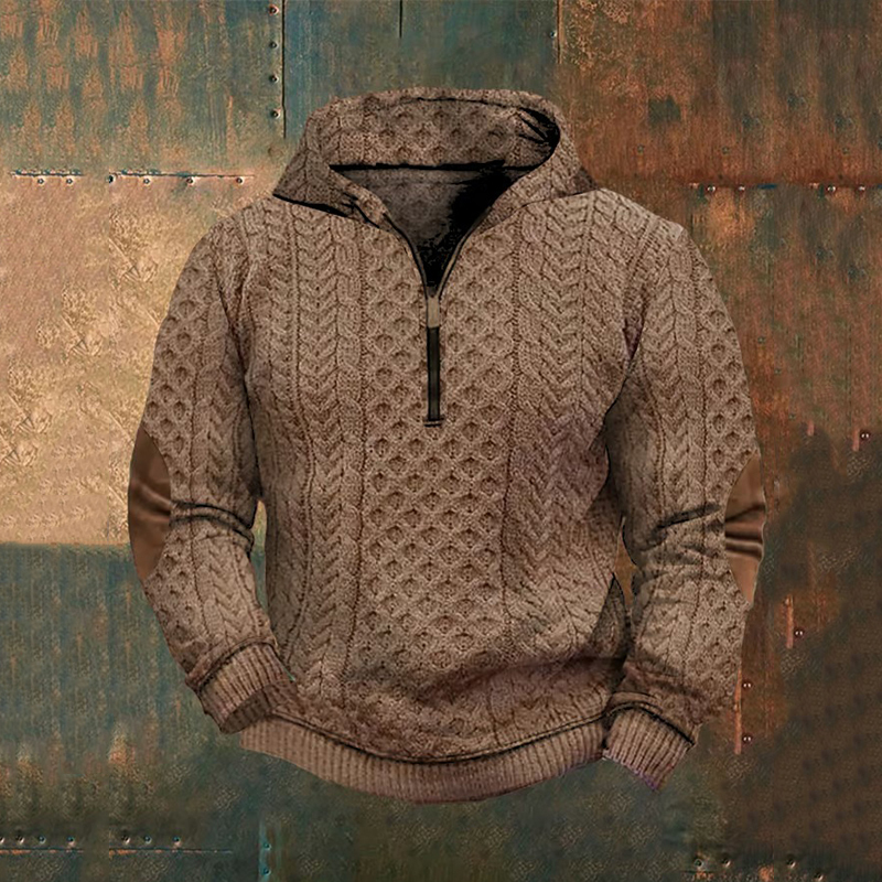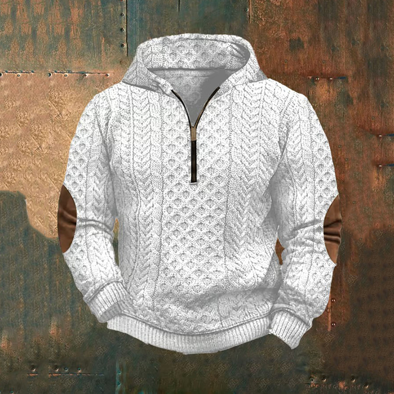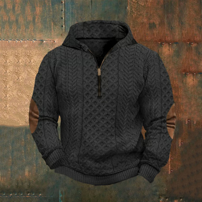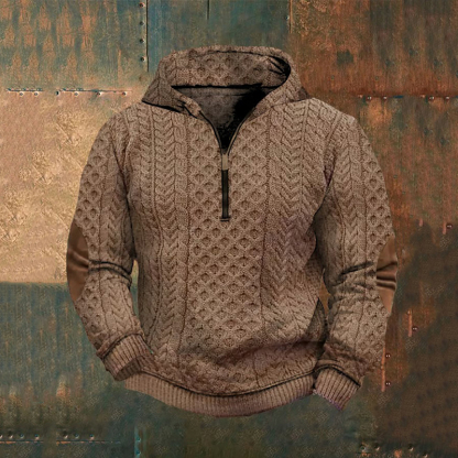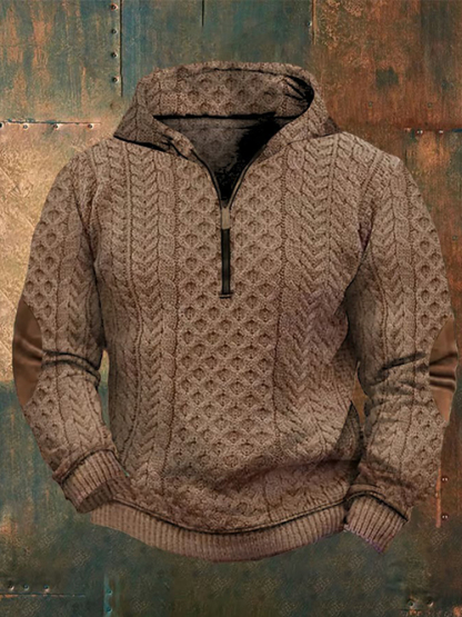 Men's Retro Western Patchwork Printed Zipper Hooded Sweatshirt