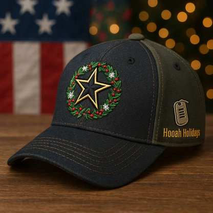 Men's Vintage Army Christmas Art Print Hat