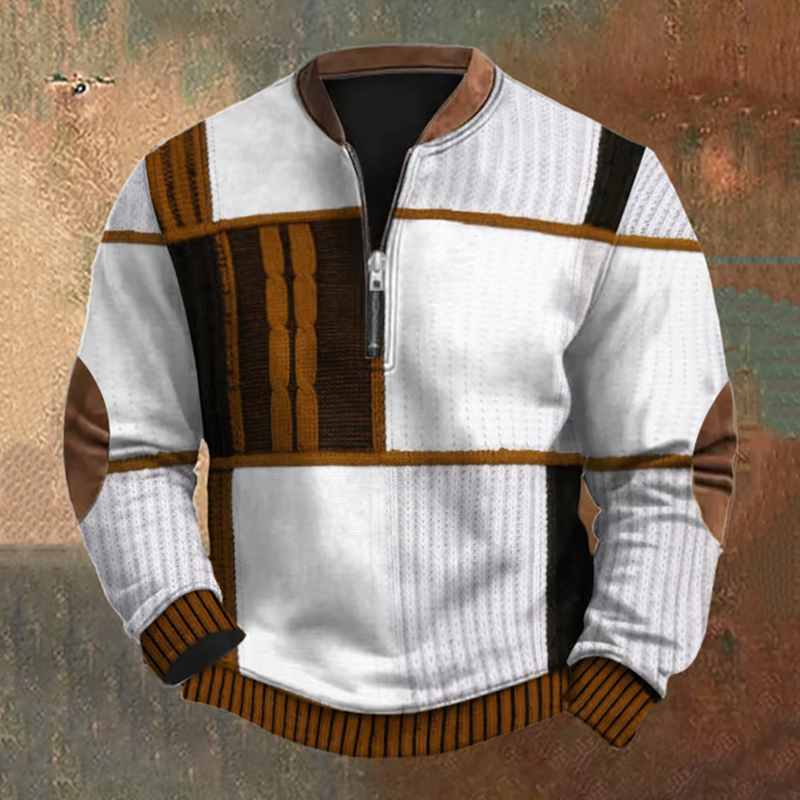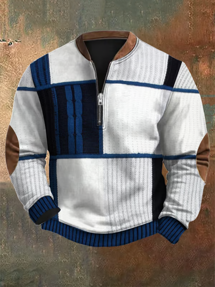 Men's Vintage Western Contrast Knit Print Zip Up Sweatshirt