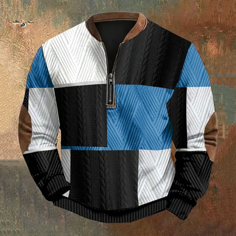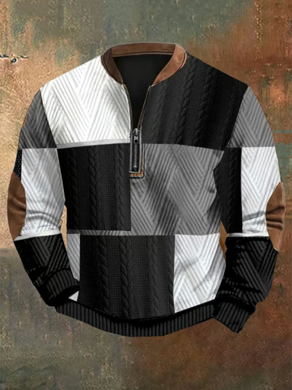 Men's Vintage Western Contrast Knit Print Zip Up Sweatshirt