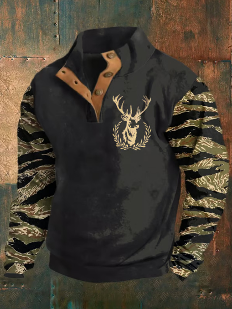 Men's Vintage Western Print Stand Collar Button-down Sweatshirt
