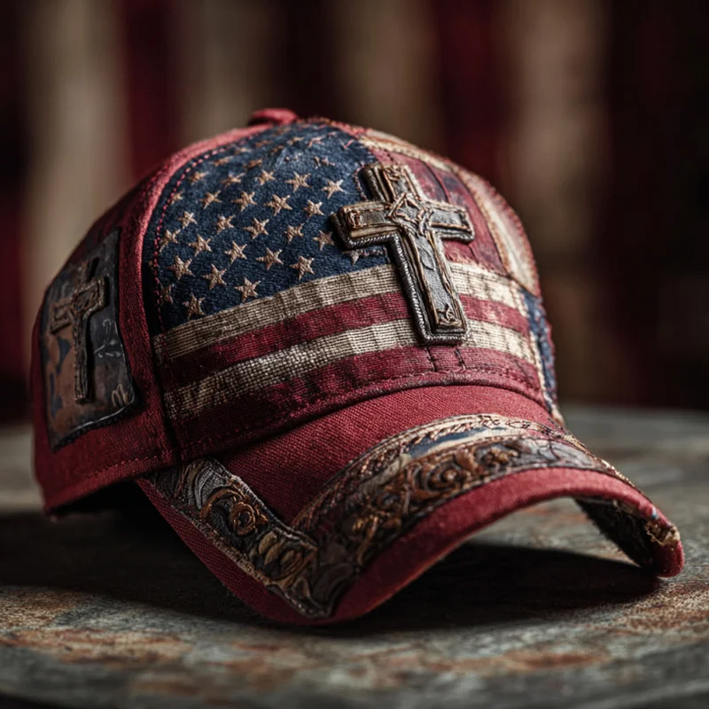 Retro Veteran Flag Faith Print Hat