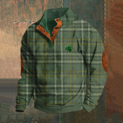 Vintage Ireland Plaid Embroidery Graphic Print Casual Sweater
