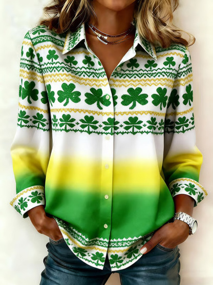 Women's Casual St. Patrick's Day Printed Lapel Shirt