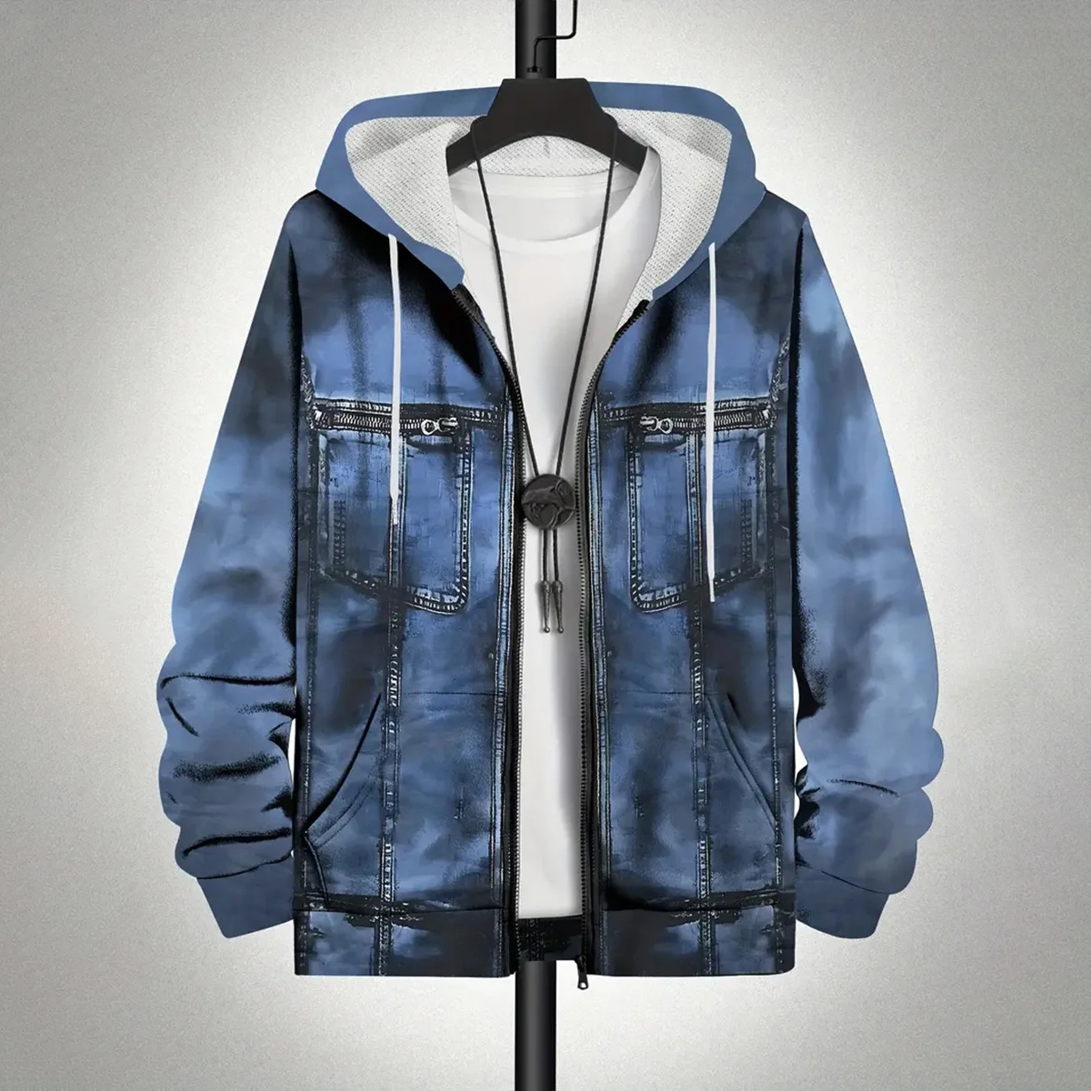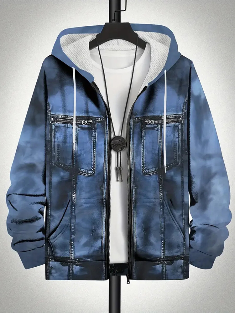 Men's Retro Art Print Zip-up Hoodie Sweatshirt