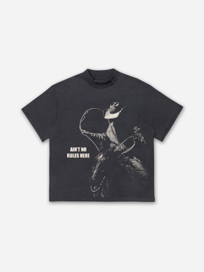 Ain't No Rules Here Western Cowboy Graphic Cotton T-shirt