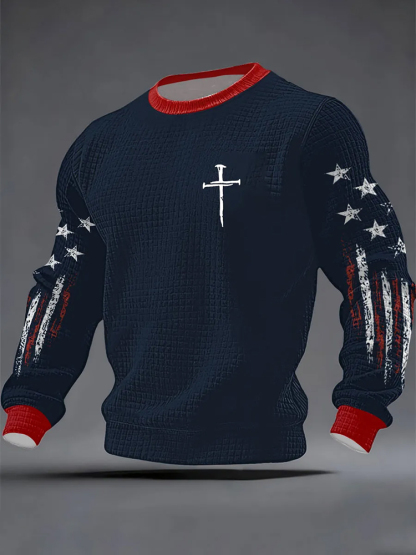 Men's Faith Cross Checkered Cotton Long Sleeve Sweatshirt