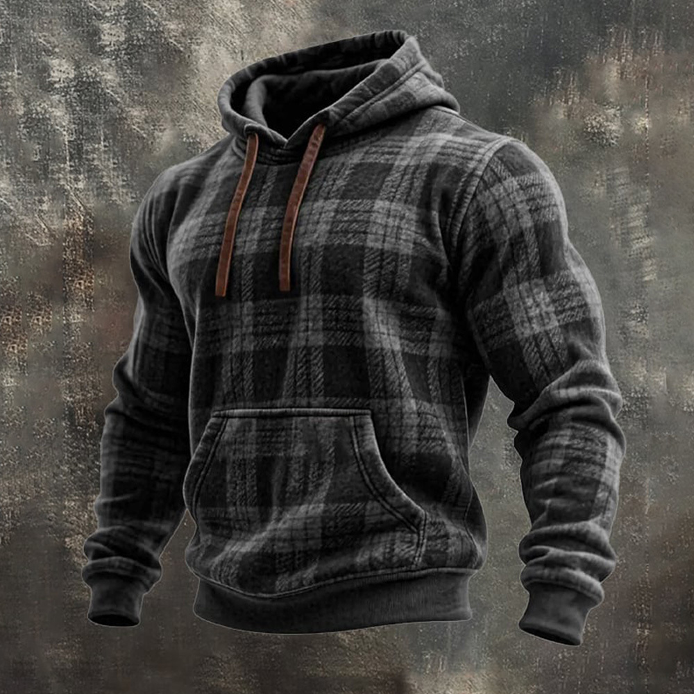 Men's Retro Distressed Plaid Print Casual Long Sleeve Sweatshirt