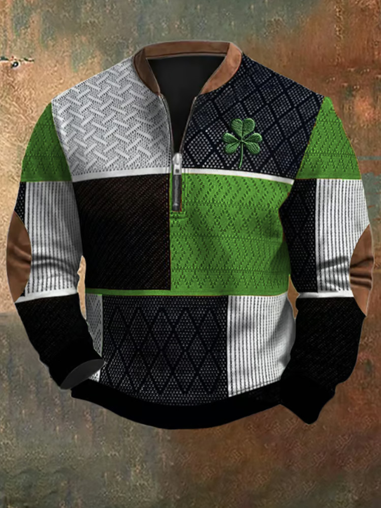 Men's St. Patrick's Day Textured Print Zip Collar Sweatshirt